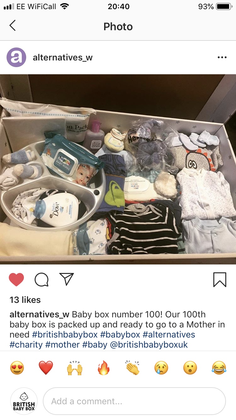 We would like many other Charities like Alternatives Watford, to give a Baby Box as a gift to any mum-to-be who is 32+ weeks pregnant and meets at least one of the following criteria: